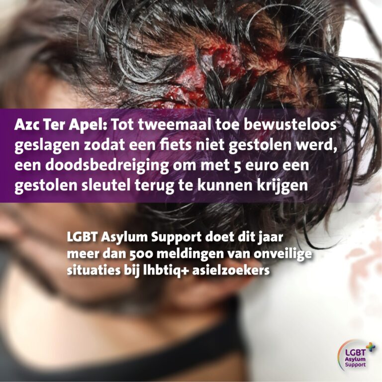 [Persbericht Ter Apel, 31 december 2022] Vrijwel dag en nacht staat LGBT Asylum Support inmiddels met een groep van bijna 700 lhbtiq+ asielzoekers door heel Nederland in contact. Uit de enorme toename van signalen van onveilige situaties in opvanglocaties maar ook in de crisisnoodopvang, blijkt de omvang van de opvangcrisis zich echter niet te beperken tot enkel het COA. De gehele migratieketen waartoe ook lhbtiq+ belangenorganisaties behoren zoals LGBT Asylum Support die kwetsbare lhbtiq+ asielzoekers bijstaat, bemerkt dit. In een brief die op de laatste dag van het jaar aan de staatssecretaris en Tweede Kamer verzonden is, uit LGBT Asylum Support hun zorgen over de met name nog immer onhoudbare situatie in azc Ter Apel. Maar ook dat er dit jaar meer dan 500 meldingen van onveilige situaties bij lhbtiq+ asielzoekers zijn gedaan en niet in alle gevallen aangifte mogelijk bleek.