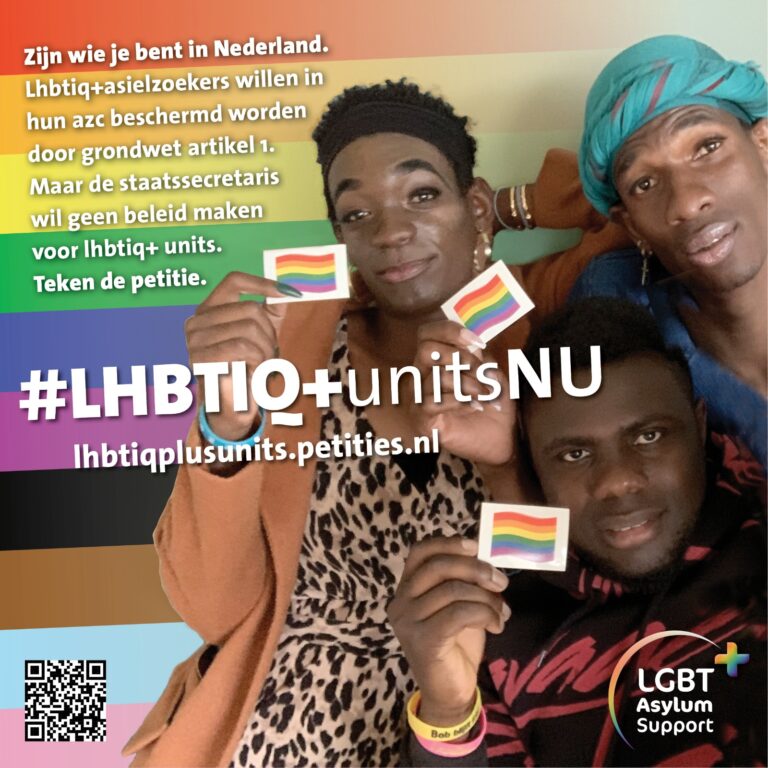 [Persbericht 21 juli 2023] Zijn wie je bent in Nederland. Lhbtiq+ (lesbische, homoseksuele, biseksuele, transgender, interseksuele en queer) asielzoekers die gevlucht zijn vanwege hun identiteit, vragen om bescherming in Nederland op basis van grondwet artikel 1. In hun azc komen ze dezelfde homofobe cultuur tegen die ze ontvlucht zijn. Verschillende onderzoeken van LGBT Asylum Support wijzen over meerdere jaren uit dat meer dan tweederde van deze kwetsbare groep in hun azc gediscrimineerd wordt. Iets wat extreem hoog is. Maar dat ook een groot deel uit zelfbehoud terug in de kast gaat. Sinds mei 2016 voert LGBT Asylum Support discussie met verschillende staatssecretarissen die stellen dat een azc een afspiegeling van onze maatschappij moet zijn en apart opvangen niet plaatsvindt. Maar een azc is geen afspiegeling van onze maatschappij, blijkt uit meerdere onderzoeken door LGBT Asylum Support. Er is daarom geen structureel beleid ondanks dat het COA in sommige azc’s lhbtiq+ asielzoekers wél apart opvangt. Maar dat mag volgens de staatssecretaris geen lhbtiq+ unit heten.