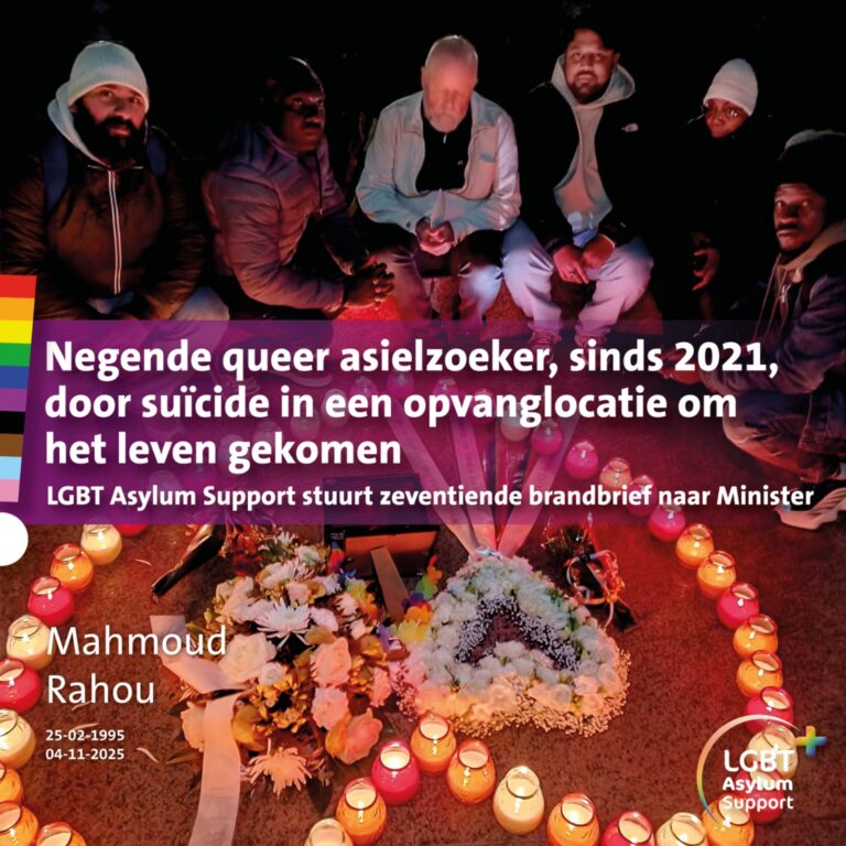 Met de vraag ‘Waar ben je veilig als bescherming niet langer gegarandeerd is?’ heeft de stichting LGBT Asylum Support minister Van Weel van Asiel en Migratie met een zeventiende brandbrief op de hoogte gebracht van de negende queer asielzoeker die door suïcide om het leven is gekomen. Op 4 november 2025 overleed de 30-jarige, uit Algerije gevluchte Mahmoud Rahou, wiens asielaanvraag als #NietGayGenoeg werd afgewezen door de IND, ondanks al zijn trauma’s en letsel door mishandeling met een hakmes door zijn familie. Desondanks concludeerde de IND dat hij in staat zou zijn om terug te keren naar een land waar homoseksualiteit strafbaar is. Queer asielzoekers kunnen niet terugkeren naar hun land van herkomst. Thuisland is nooit het land dat ze ontvluchten, maar het land waarnaar ze vluchten.