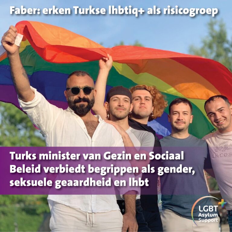 Groningen, [15 mei 2025] – LGBT Asylum Support dringt met klem aan bij minister Faber van Asiel en Migratie om lhbtqi+ asielzoekers uit Turkije als risicogroep te erkennen. Deze dringende oproep volgt op zeer verontrustende berichten over de behandeling van deze kwetsbare groep, waaronder een recent wetsontwerp van het Turkse ministerie van Justitie dat tot verdere strafbaarstelling leidt. Ook het Turkse ministerie van Gezin en Sociaal Beleid heeft zeer recent begrippen als gender, genderidentiteit, lhbt en SOGIESC (seksuele geaardheid, genderidentiteit, genderexpressie en geslachtskenmerken) verboden, omdat deze begrippen het begrip “gezin” zouden schaden.