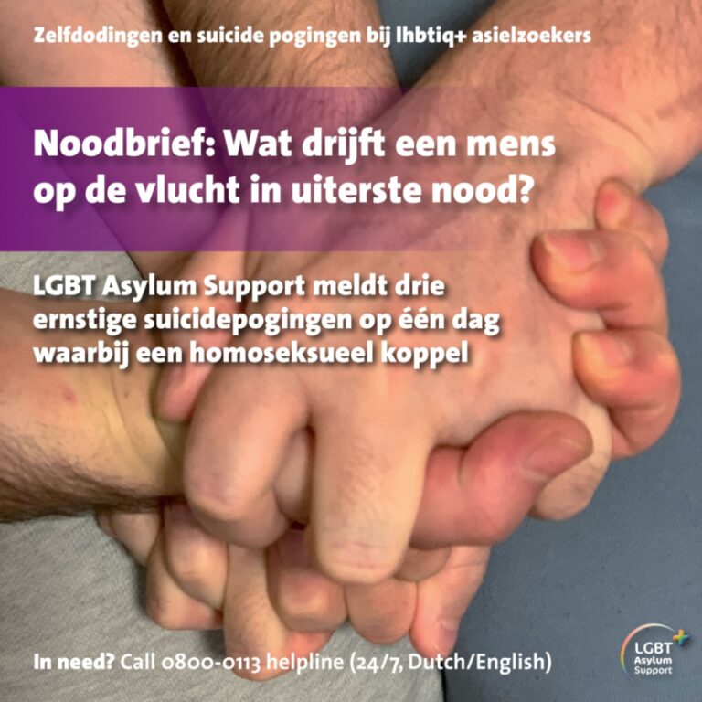LGBT Asylum Support meldt drie ernstige suïcidepogingen op één dag waarbij een homoseksueel koppel